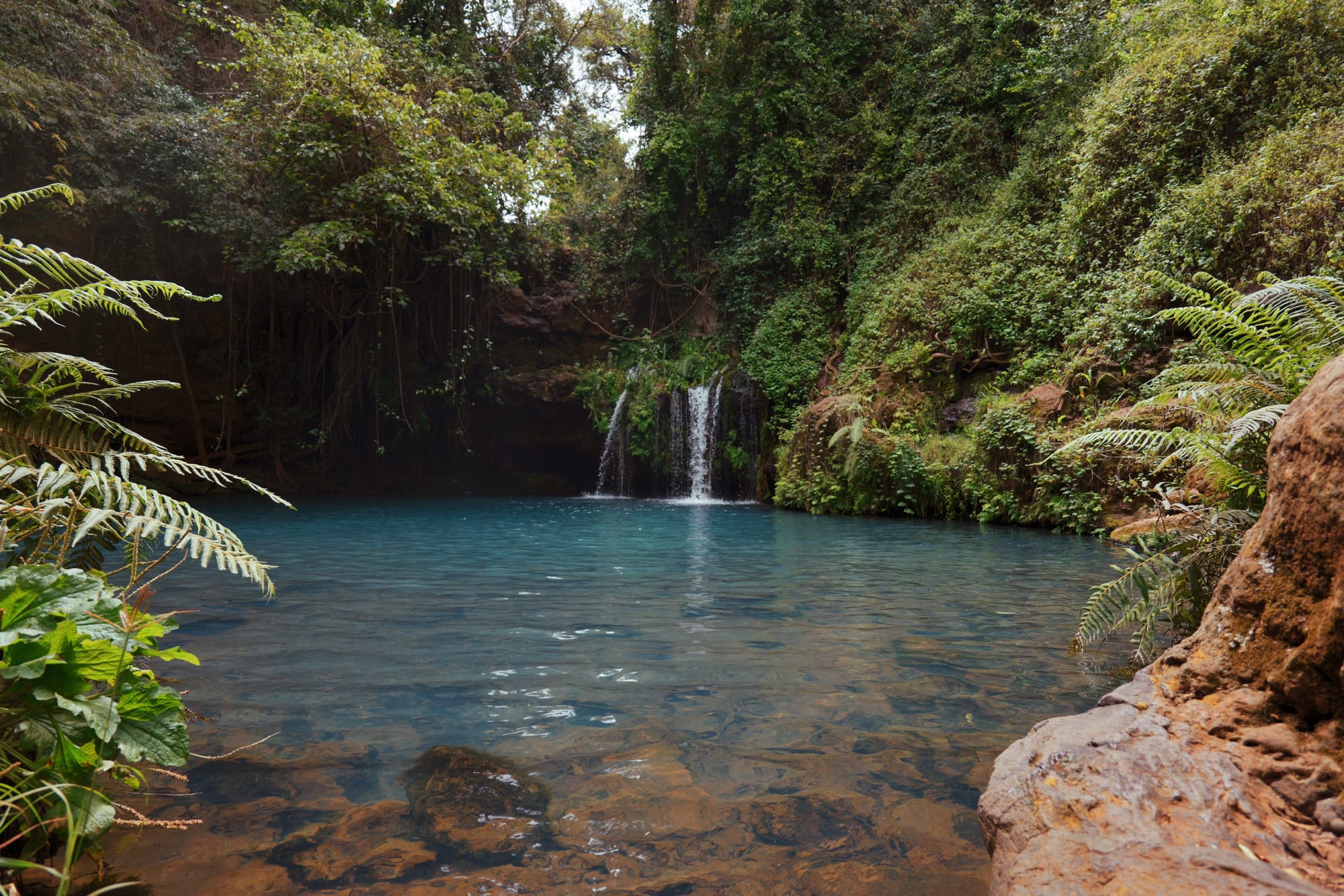 After roughly 30 minutes, leave the main vehicle track on a short forest detour that drops steeply into the river bed. This leads you to the famous Blue Pools; clear turquoise water fed by Mount Kenya. It’s a natural rest spot and a good place for a snack, photos, and (for the brave) a cold plunge.